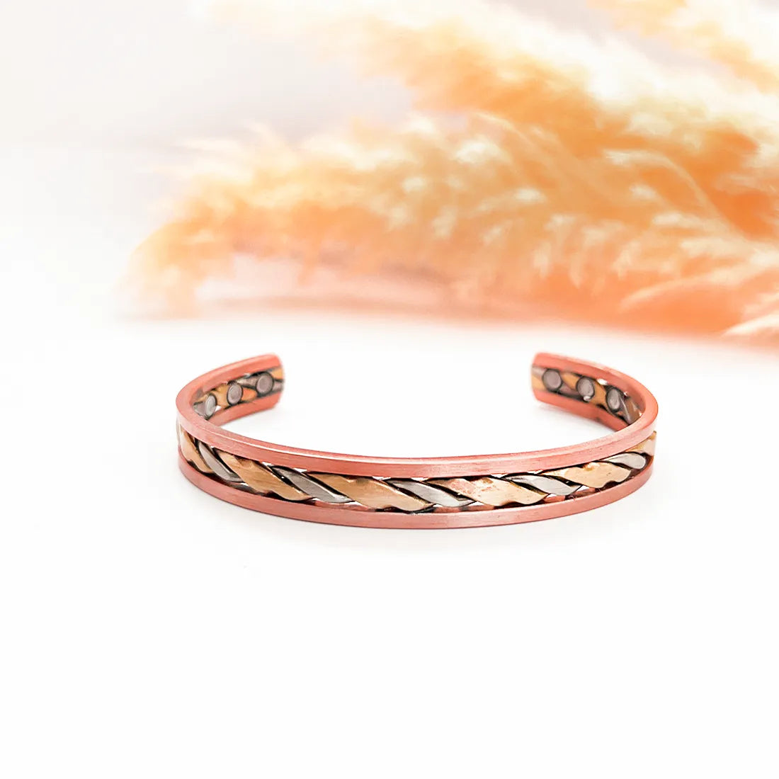 Made from lead and nickel-free eco-friendly copper, this magnetic therapy bracelet is designed to offer holistic benefits while ensuring safety for sensitive skin. The 16cm perimeter with an adjustable fit makes it ideal for both men and women. Its timeless copper finish complements any outfit, whether casual or formal.