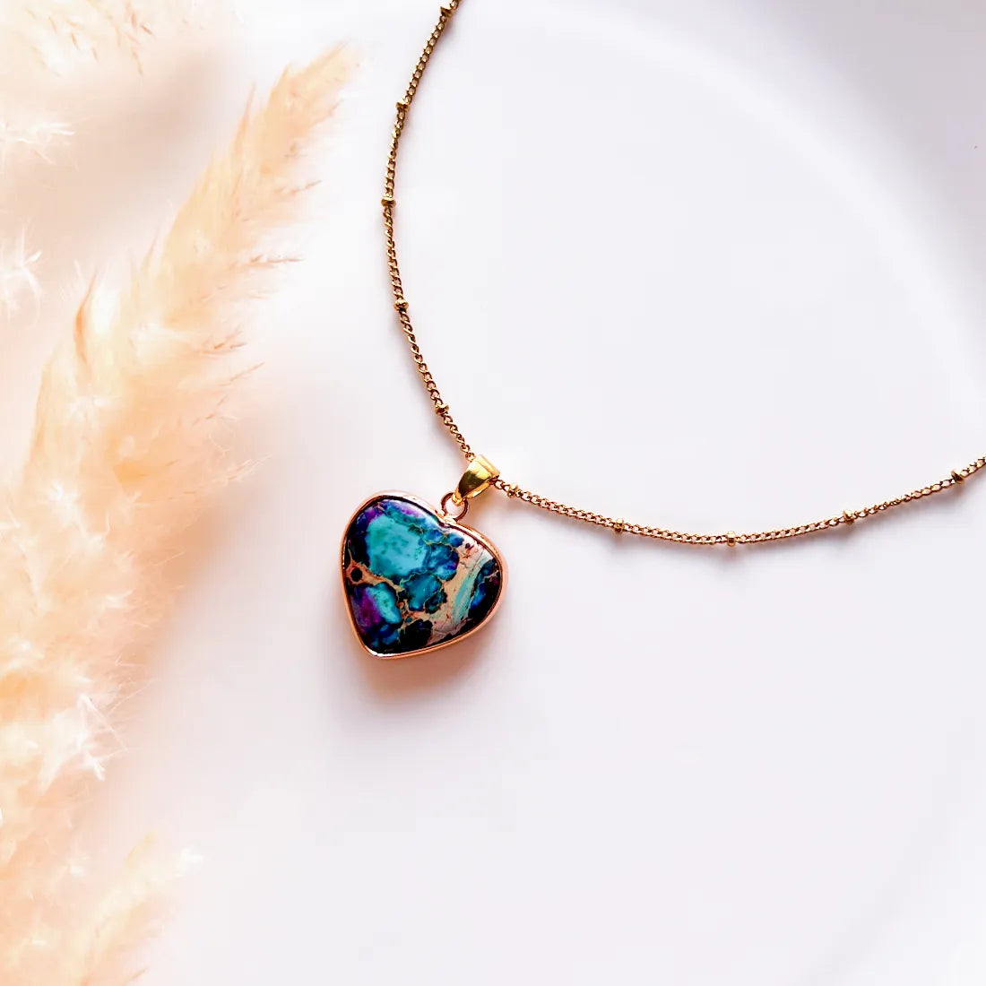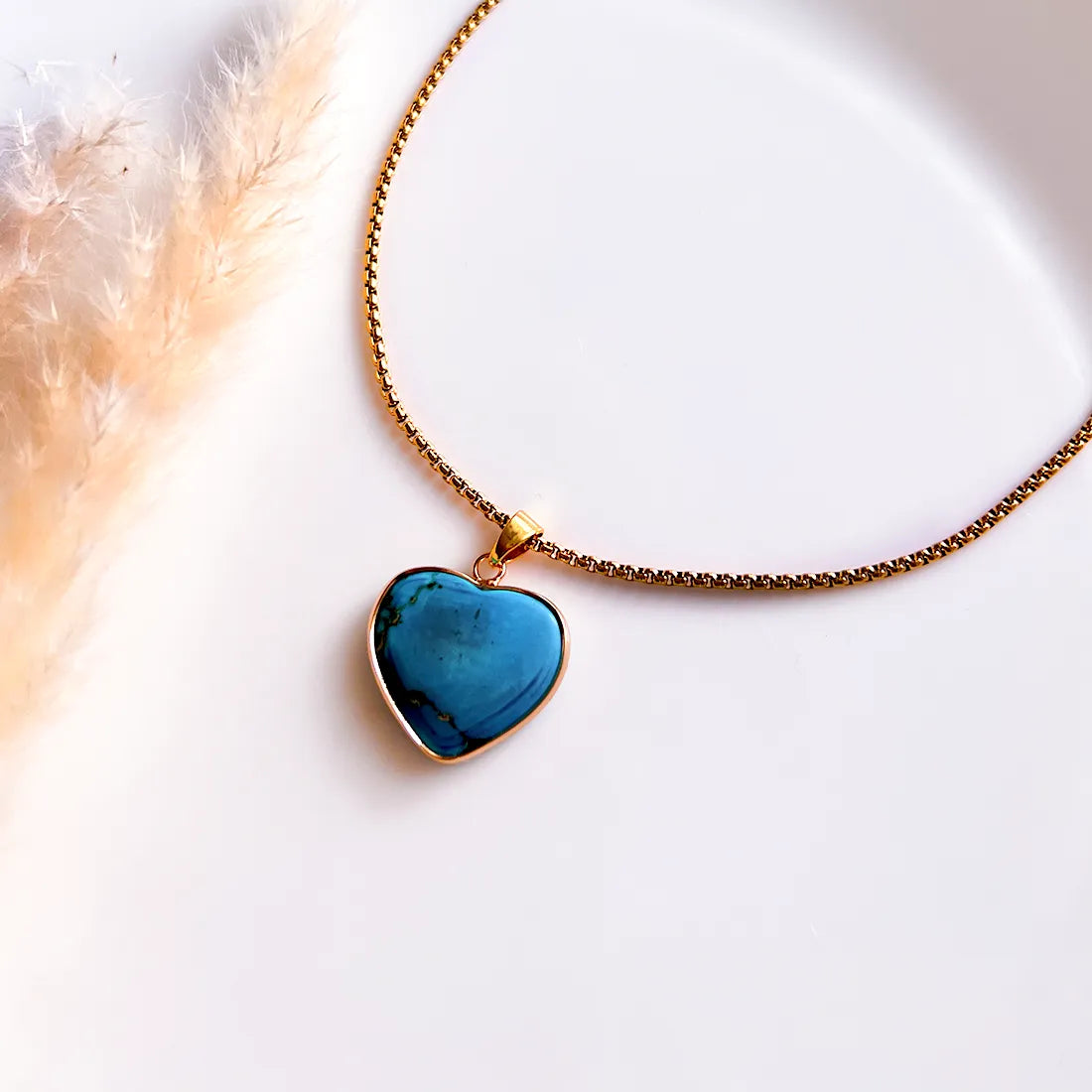 The necklace is crafted with high-quality metals and a shimmering blue pendant to mimic ocean waves.